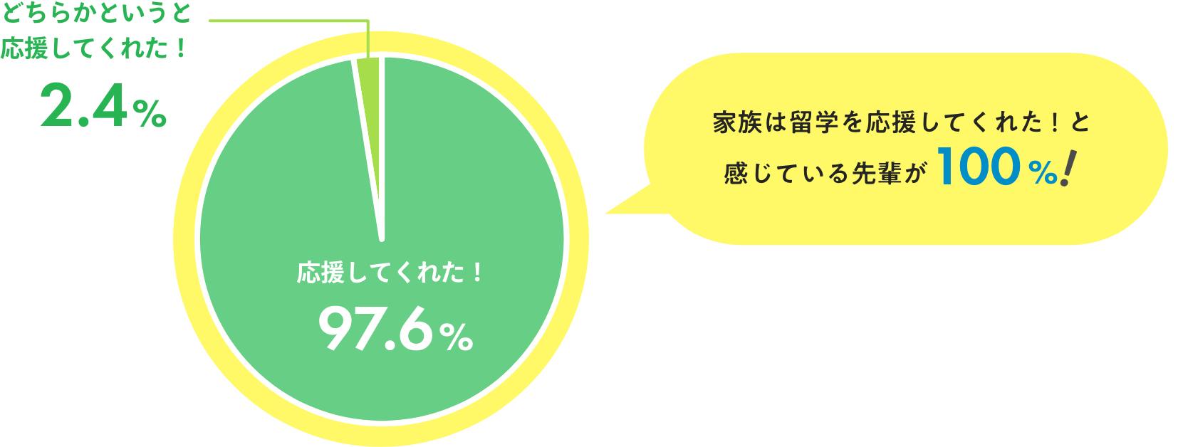 ※「どちらとも⾔えない」「どちらかというと留学しない⽅がよかったと思っている」「留学しない⽅がよかったと思っている」は0%
